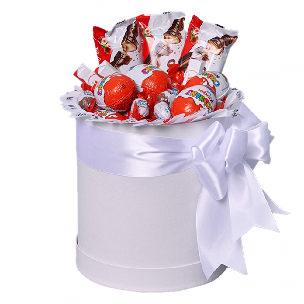 Коробка с киндерами «Сладкая Фея» это практичное и в то же время нестандартное решение для подарка. Купить киндеры в шляпной коробке по доступной цене в Киеве. Внутри шляпной коробки собрана подборка популярных сладостей Kinder, аккуратно оформленных и готовых к вручению. Мы доставим сладости на дом оперативно. Такой формат позволяет преподнести угощение без лишней подготовки, сохраняя при этом презентабельный вид. Для жителей городв предусмотрена возможность купить коробку с киндерами в Киеве с быстрой доставкой по городу. Модно заказать подарочную коробку с шоколадом как по Украине так и по миру. Сервис доставки сладостей и фруктов по Украине работает в сжатые сроки, что позволяет дарить подарки даже при минимальном запасе времени.